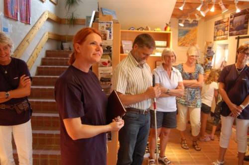 Tilbage til restauranten, hvor kaffen og kagen venter. Inden den obligatoriske takkegave i form af en æske chokolade bliver overrakt, kommer den lokale ”Branding” mand på besøg. Med den iver, hvormed han indleder samtalen med ministeren, kunne man måske et øjeblik tro, at det var en lokal cowboy, der ville snakke kvæg og brændemærker og hvad der er mit og dit. Men nej. Det er Ole Poul Hansen. Det drejer sig om, at Fur af staten har modtaget 1 million til et branding-Fur projekt, der skal få flere tilflyttere til øen. Og det skal ministeren naturligvis høre om, så hun ved, at Fur er et godt sted at slå sig ned.