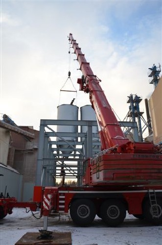 Driftsleder på Damolin Marinus Andersen fortæller, at de nye siloer skal bruges til tørret granulat, der bruges som bærestoffer for foder. Det er en artikel, som de seneste år er blevet stadig større. Da Marinus Andersen startede på Damolin for 14 år siden, solgte firmaet 40 tons om året. Nu sælges omkring 50 tons om dagen. Med de nye siloer kan Damolin bedre opfylde kundernes specifikke behov. Den nye afdeling regner man med at tage i brug lige først i januar. Det betyder samtidig, at det gamle anlæg til granulat lukkes, da maskiner herfra skal flyttes til de nye siloer. “Så alle krydser fingre for, at alt virker første gang. Hvis ikke, så bliver det sent, inden vi kommer i seng”, siger Marinus og griner.