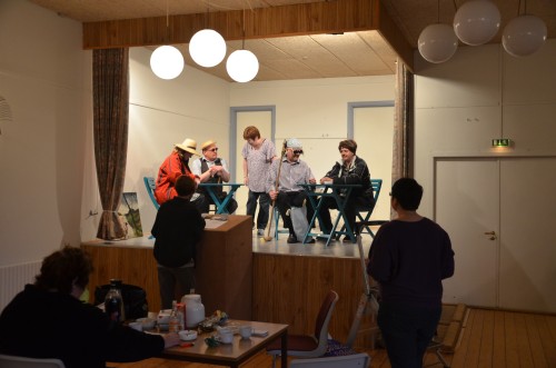 I øjeblikket øves der på fuld kraft, så der venter helt sikkert publikum en sjov aften.