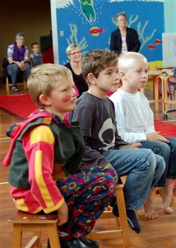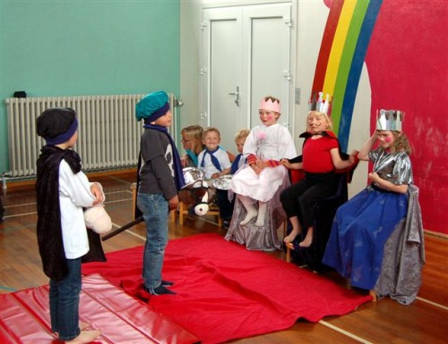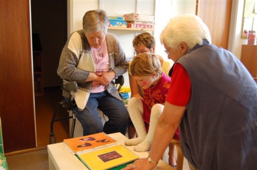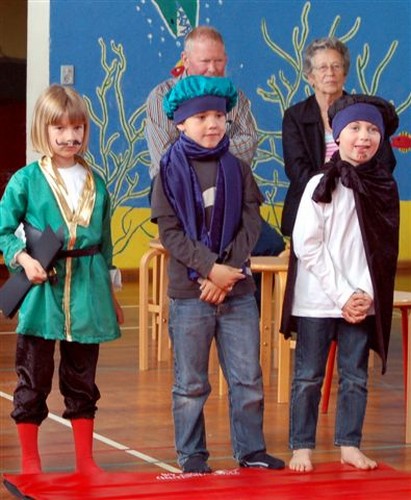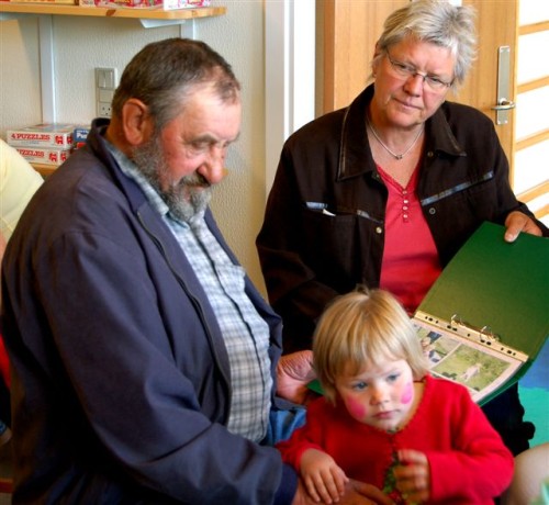 Bagefter var det bedsteforældrenes tur til at optræde. ”Lille Ib, hans far og mor og de tre små bjørne” måtte løbe rundt om stolene adskillige gange inden man igen gik tilbage til børnehaven og spiste de medbragte klemmer, mens børnene viste deres mapper med billeder frem.