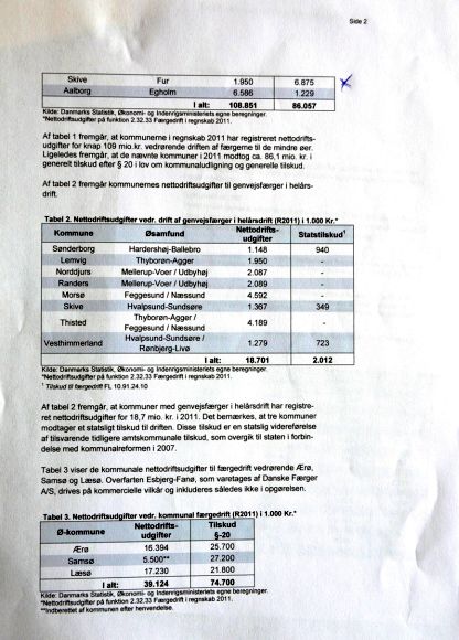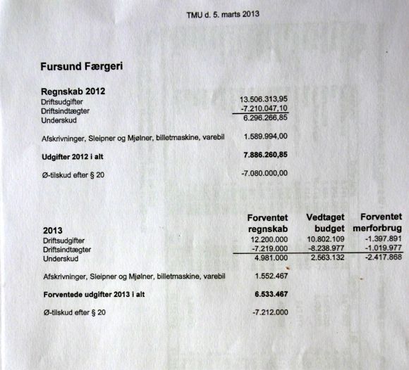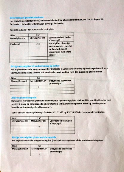 Med hensyn til færgedriften har kommunen også sat tal på, hvad det koster at have Fur. Her fortæller kommunens egne tal, at det underskud på flere millioner, som har været fremme i debatten ikke er rigtig, hvis ø-tilskuddet indregnes efter de tal, som kommunen selv har opgivet.