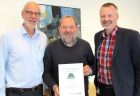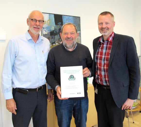 Glade vindere med beviset for, at Fur har den grønne førertrøje: Borgmester Flemming Eskildsen, Fur-repræsentant Hans Jeppsen og fra EnergiMidt, Martin Romvig.