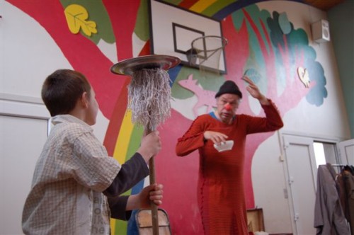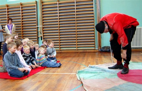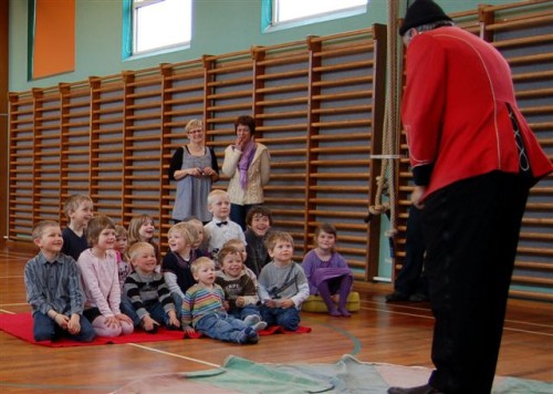 Børnene blev da heller ikke skuffede, for i gymnastiksalen ventede en vaskeægte klovn, der tillige var tryllekunstner.