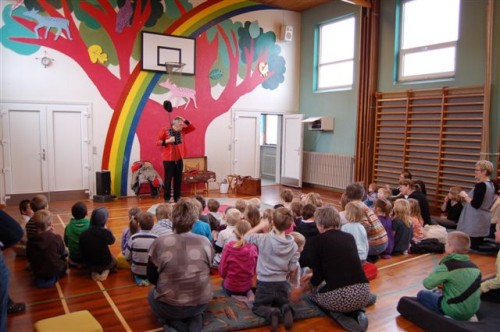 Dagen begyndte med rundstykker og kaffe til børn og forældre. Klokken 10 var der indbudt til et stort overraskelsesarrangement i skolens gymnastiksal, og allerede inden gik rygtet blandt børnene, at der var set en rigtig klovn på området.