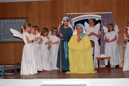 Søndag den 7. december. Igen i år landede der engle på Fur i form af 30 veloplagte børn som havde brugt de sidste tre uger på at øve sig i roller som engle, hyrder, visemænd samt Josef og Maria.