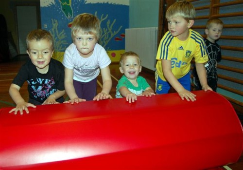 Hver onsdag eftermiddag står menuen på gymnastik for børnene i Fur Børnehave. Det er Helle Mortensen, der står for det og hun og børnene kan nu glæde sig over, at der takket Sparekassefonden er blevet råd til indkøb af en ny rullemadras og et ”hjul” til gymnastiksalen.