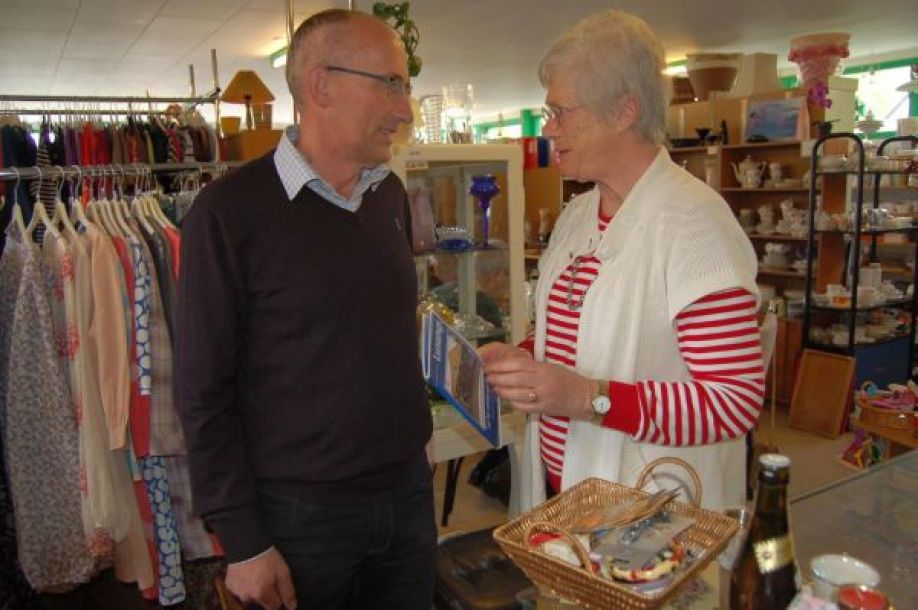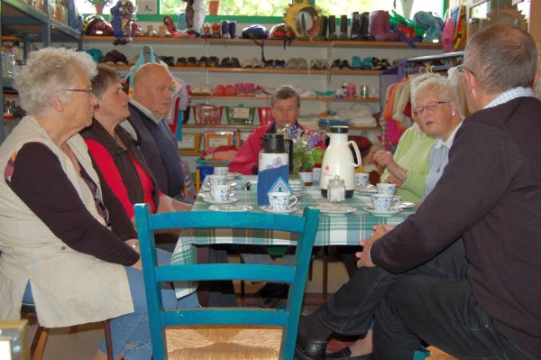 Tirsdag eftermiddag den 13. maj havde Oda og Vagner tilkaldt os alle frivillige hjælpere, der arbejder i genbrugsbutikken, “Lusangi” til et personalemøde i anledning af, at vores generalsekretær Erik Baun går på pension.