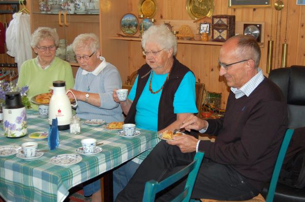Han var så kommet for at tage afsked med os, og havde så sin afløser, som hedder: Jens Peter Rejkjær med, og præsenterede ham for os. Vi havde en hyggelig eftermiddag sammen, hvor vi fik kaffe med kringle og flødeskumslagkage, som Oda havde fremskaffet.