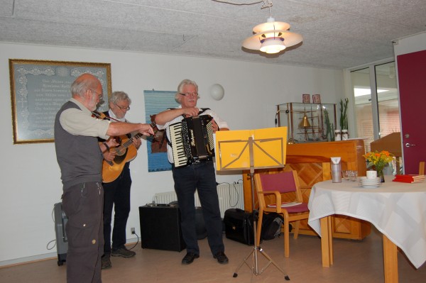 De spillede flere former for spillemandsmusik, som jeg ikke har meget forstand på hvad hedder, der var både polka scotish og valse, men jeg syntes, det var dejligt at høre på, ind imellem sang vi også nogle fællessange fra seniorsangbogen, og vi sluttede med: “Skul gammel venskab rejn forgo”.