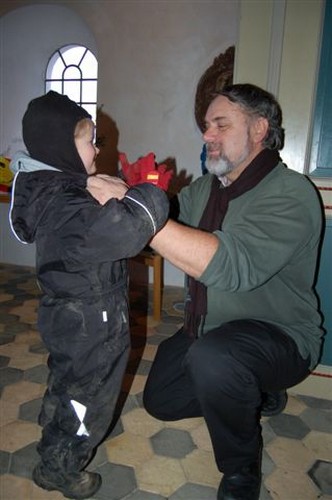 Derefter var der saftevand og kaffe. Og efter et par snebolde ude på kirkegården, gik det igen hjemad mod børnehaven.