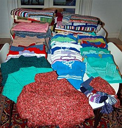 Nørklerne modtager med taknemlighed garn, stoffer og trøjer til optrævling. Ligeledes har man med tak modtaget penge fra fonde til køb af garn.