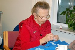 Nørklerne mødes en gang om ugen på Fur Ældrecenter, men nogle vælger også at sidde derhjemme og sy og strikke der.