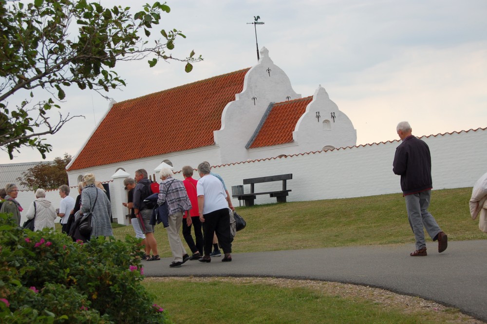 Det tog tre kvarter at køre derover, og da vi ankom til øen, gjorde vi holdt på en parkeringsplads overfor brugsen. Derpå gik vi den korte tur til Øens kirke, som ikke var ret stor men meget smuk, den var opført i 1635.