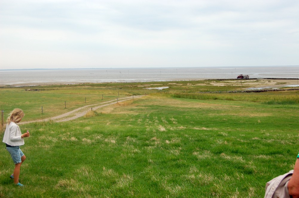 På tilbagevejen fulgte vi den nyere højere beliggende dæmning, og da var jeg så heldig at komme til at sidde ovenpå bussen, hvor der også var borde og bænke, og det var en vidunderlig oplevelse at se det store liv, der var af vadehavsfugle.
