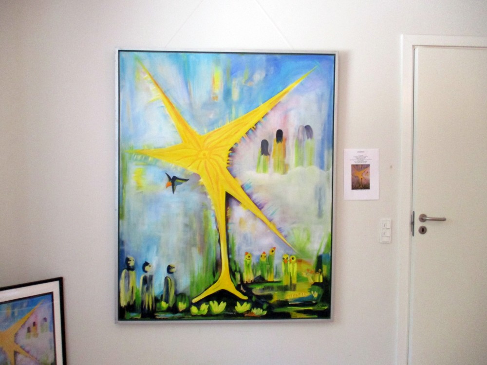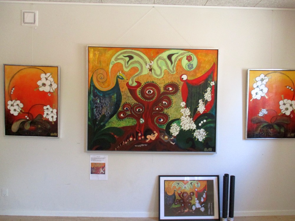 Hun begyndte at male og tegne som helt lille, og samtidig med at spille musik som hun komponerede sammen, så at der var en musiklinie under malerierne, som hun kaldte musikmalerier, og det blev jeg meget fascioneret af, da billederne blev vist på et stort lærred i korbuen, så derfor var jeg nødt til at bevæge mig op i forsamlingshuset og se nærmere på dem og da selvfølgerig også de andre kunstneres værker.
