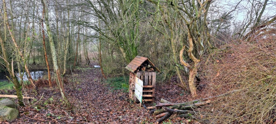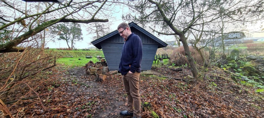 Under besøget var Brian ved at skabe overblik over klargørings-opgaver til den kommende sæson, der starter til Påske hvert år, men han gav sig alligevel tid til en lille rundvisning på den lukkede plads, hvor han viste det flotte nye insekthotel ved dammen med ænderne, og hvor han, sammen med sin pladsmand, har været i gang med at etablere nye stier.