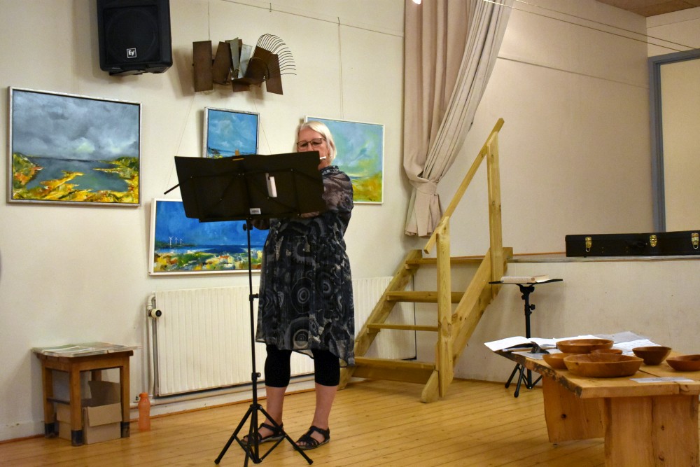 Ute Wagner spiller i forsamlingshuset