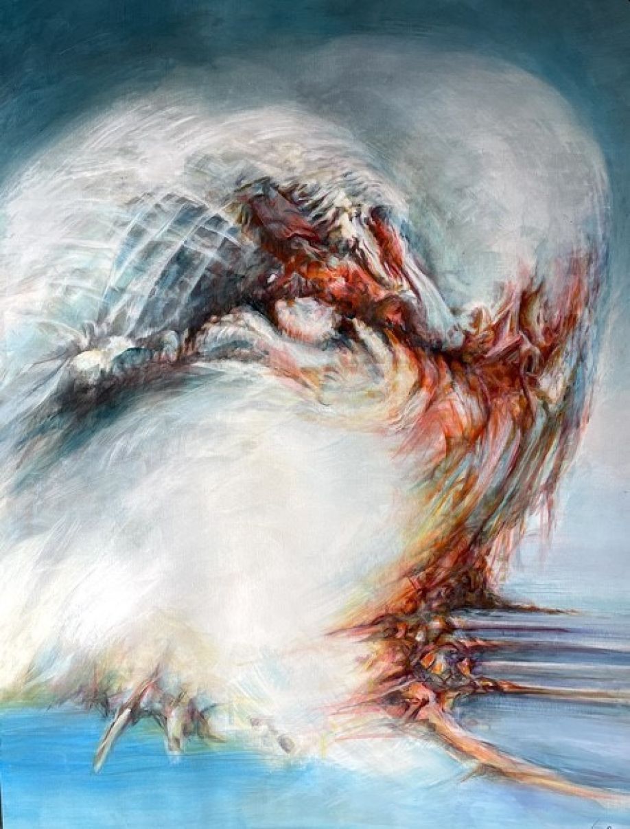 Mine malerier kan vandre i mange retninger og jeg bliver ved, ofte op til et år, til jeg kan mærke at billedet er færdigt – noget skal falde på plads inde i mig før jeg slipper et billede.