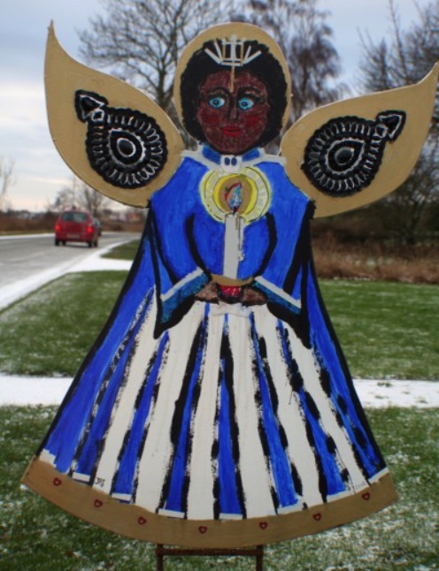 Og se det var en ekstra finesse: refleks-strimler er indarbejdet i skabelsen af englene, så de kan ses i mørket, når billygterne rammer dem.