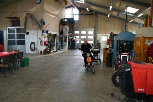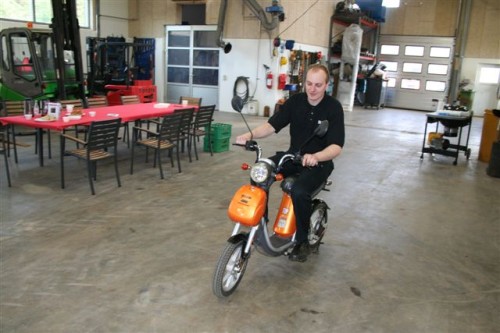 Arrangementet begyndte klokken 10.00 og præcis på dette klokkeslæt mødte FurNyts udsendte op og blev således dagens første gæst. På pladsen foran værkstedet var forskellige modeller af el-scootere stillet op. Og inde i hallen, hvor værkstedet er, var endnu flere opstillet. Dertil kom et bord med kaffe og sandwich. Og nogle få øjeblikke efter sin ankomst var den udsendte bænket her efter direkte ordre fra Leon Bro, der er den ene halvdel af firmaet.